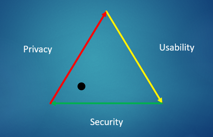In the below image we can look at what we want from our digital devices in terms of Usability, Security & Privacy. I have chosen a more Secure and Private approach by placing a dot in the lower left corner, I have scarifised Usability. This may not be suitable for all, by moving the dot around the triangle you can see what is important to you and then you can be to work out how reasonable or extreme you strategy needs to be to achieve better Security and Privacy.